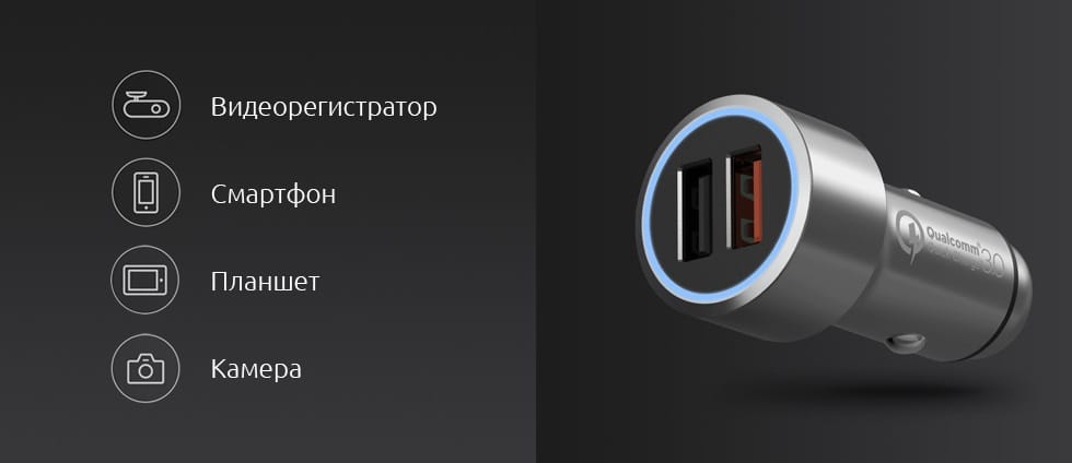 В автомобильном зарядном устройстве 70mai есть специальный чип для распознавания устройств. Он определяет мощность подключенных устройств и подстраивает параметры тока на выходе, чтобы обеспечить правильным питанием регистратор, смартфон, умное зеркало, планшет, камеру и другие устройства.
