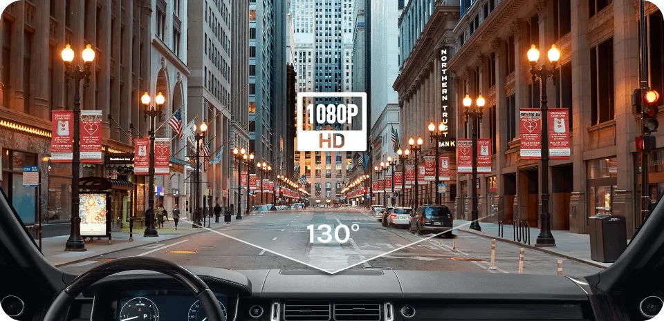 Разрешение 1080р позволяет запечатлеть более четкие детали в дороге. Широкое поле зрения 130° уменьшает слепые зоны и обеспечивает полное покрытие 3 полос движения.