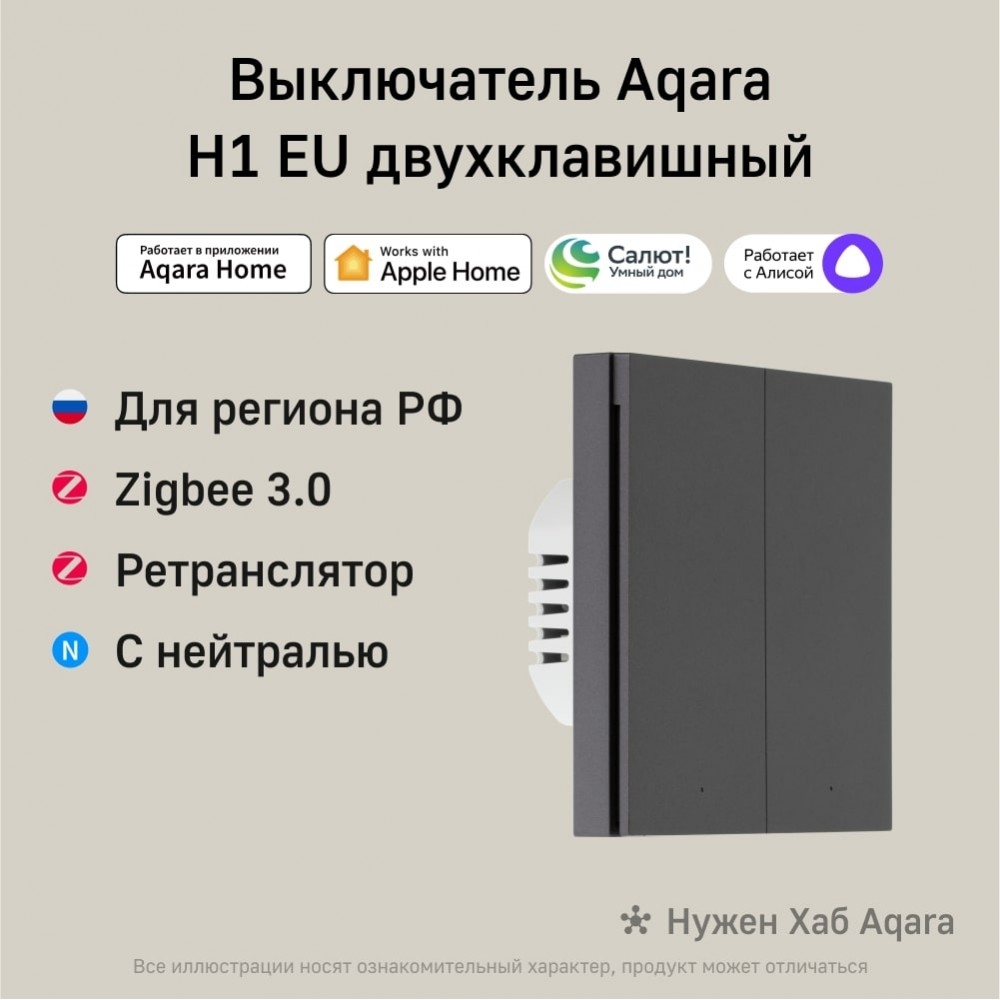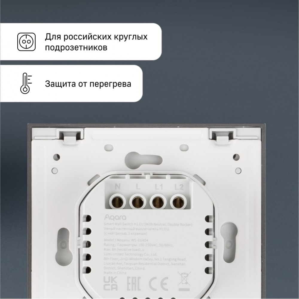 Умный настенный выключатель AQARA H1 EU WS-EUK04 графит (2 клавиши, с нейтралью)