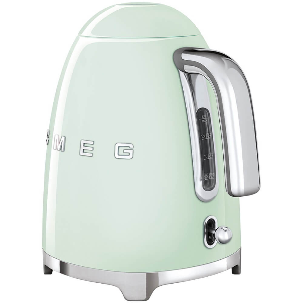 Электрический чайник Smeg KLF03PGEU – осуществите свою мечту о идеальном кухонном помощнике. Итальянский стиль, выразительный зеленый цвет, классические формы – все это выделяет модель на фоне прочих. Объем чайника 1.7 л позволяет варить чай сразу для всей семьи. Устройство оснащено автоотключением и защитой от перегрева, что обеспечивает его безопасное использование. Чайник легко очищается от накипи за счет скрытого нагревательного элемента и высококачественных материалов корпуса.