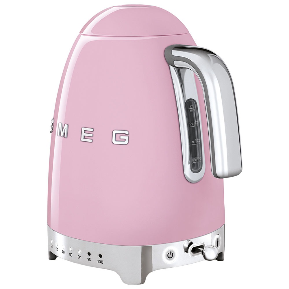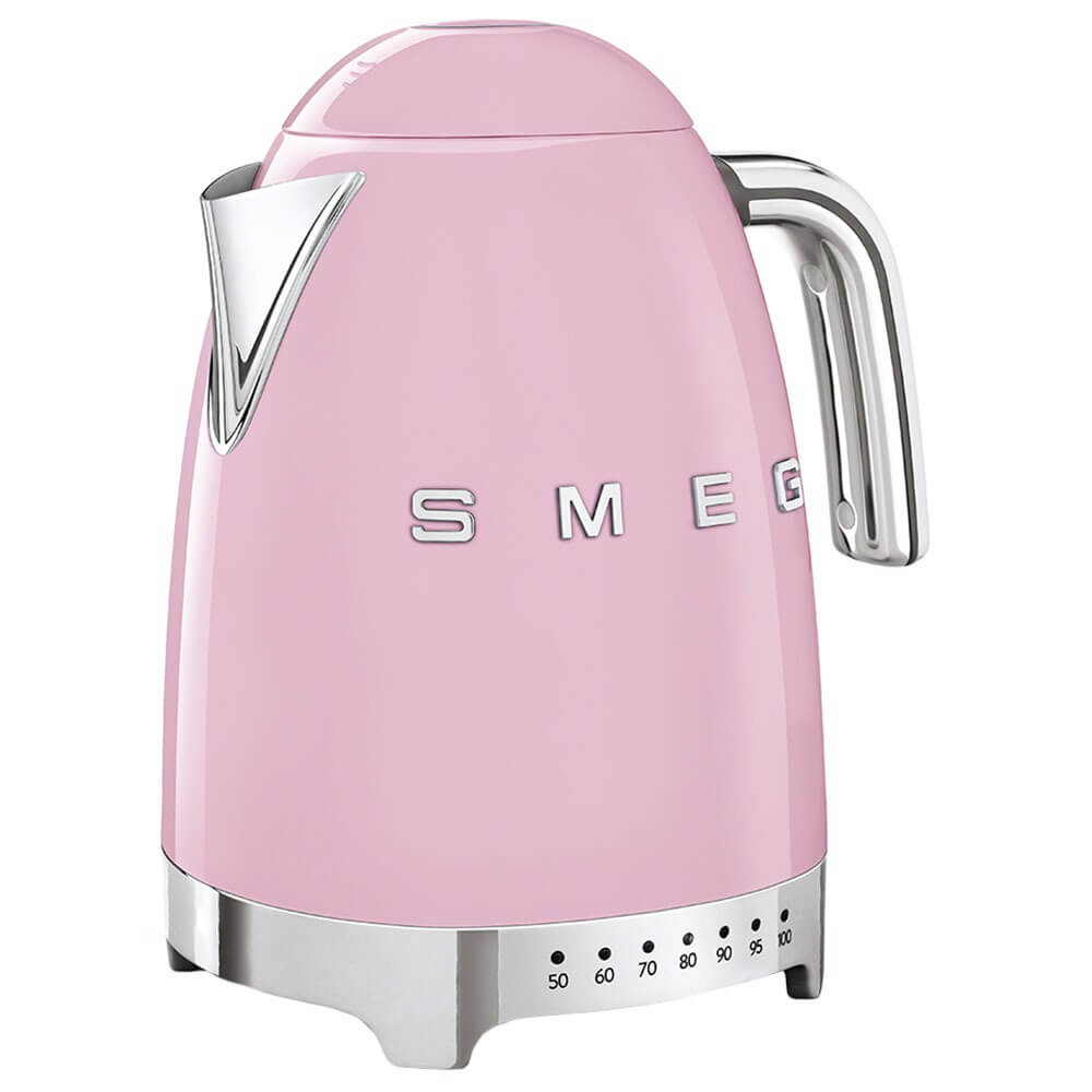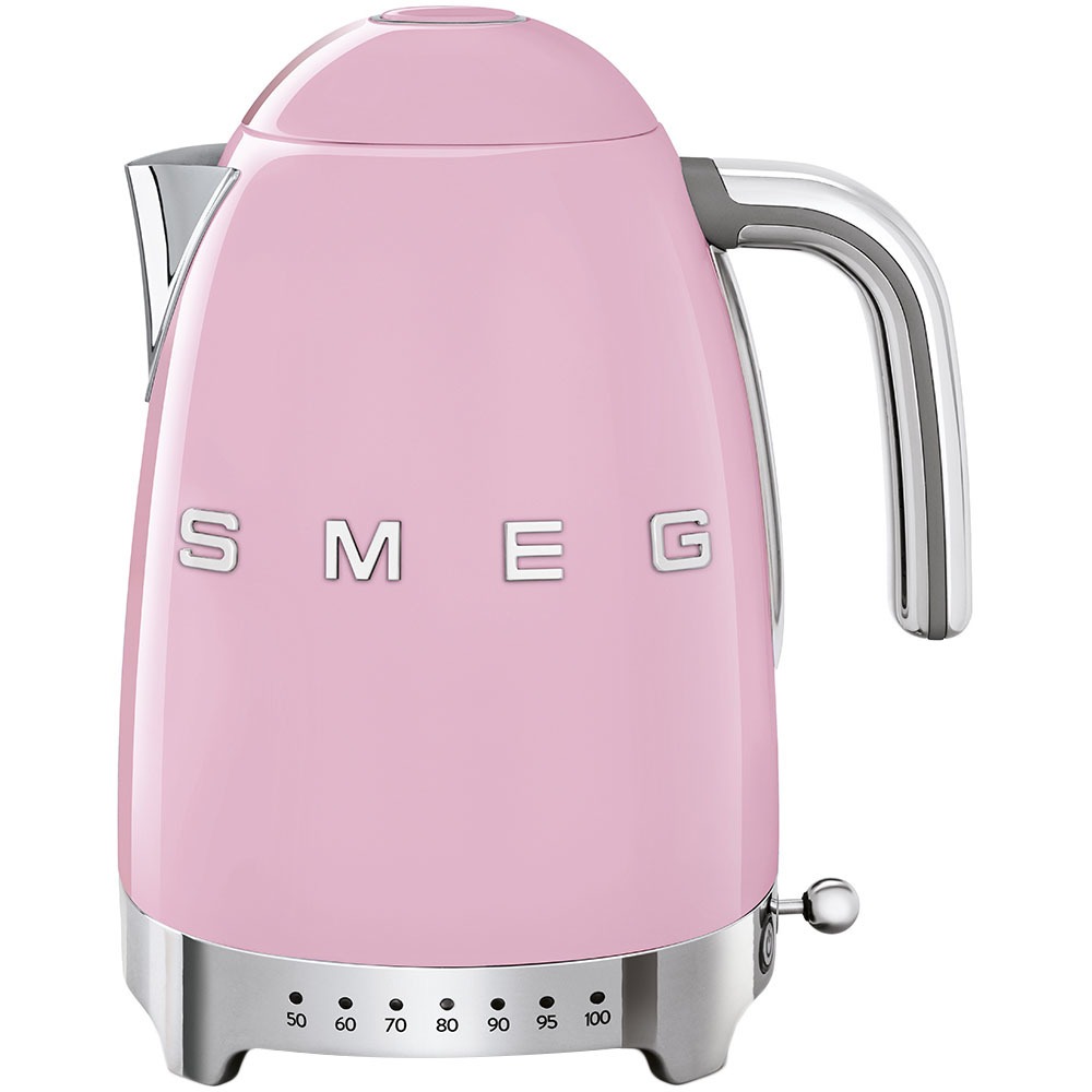 Чайник Smeg, модель KLF04PKEU, нежного розового цвета станет изысканным дополнением для вашей кухни. Изделие выполнено в стиле 50-ых годов и сочетает в себе ретро дизайн с современными технологиями. Устройство оснащено системой быстрого нагрева и автоотключения при достижении температуры кипения. Чайник изготовлен из высококачественного нержавеющего стали, имеет удобный ручной режим нагрева и вместимость 1.7 л.