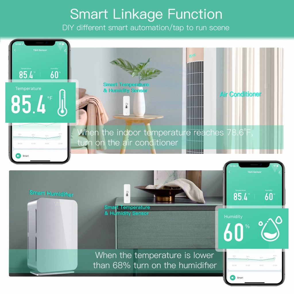 Датчик работает на основе Wi-Fi, что позволяет ему подключаться к домашней сети и отправлять данные о температуре и влажности на ваш смартфон или планшет. Это делает его идеальным для управления микроклиматом в вашем доме и экономии энергии.