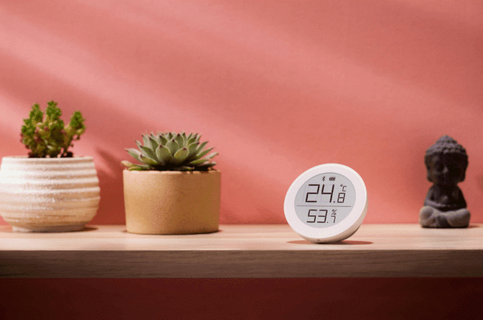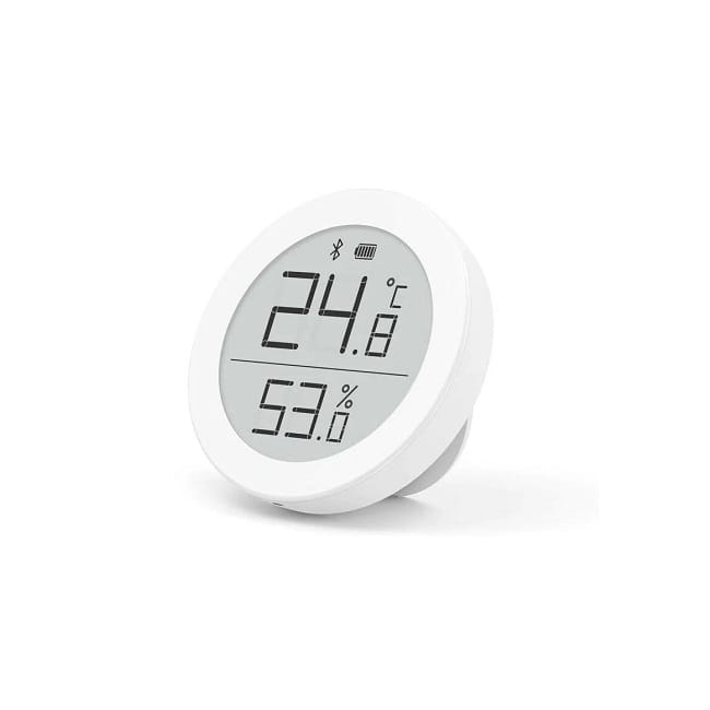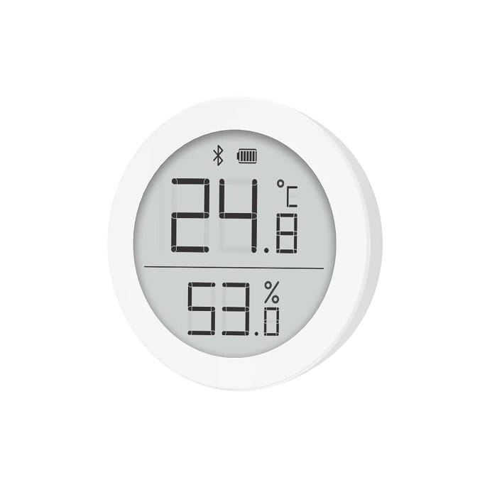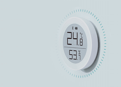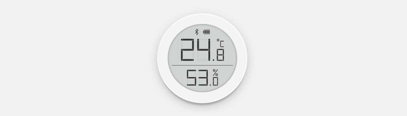 Диаметр дисплея — 5.5 см. На нем отображаются значения температуры и влажности. В устройстве предусмотрена возможность переключения единиц измерения температуры между градусами Цельсия и Фаренгейта при помощи кнопки на корпусе. Также на дисплее отображается шкала заряда батареи и индикатор подключения по Bluetooth.