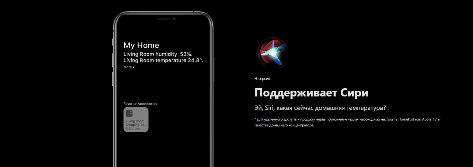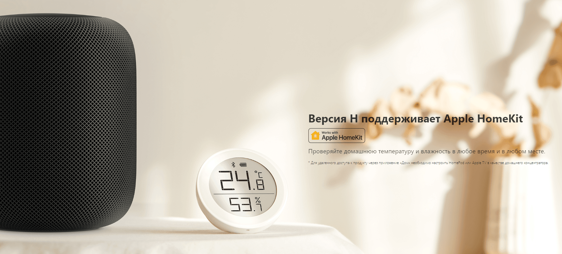 Параметры воздуха легко отслеживать в приложении Apple Home на смартфоне или планшете. Обмен данными происходит через Bluetooth. Устройство можно использовать как элемент «Умного дома», создавая сценарии, при которых автоматически включается отопление или охлаждение комнаты.