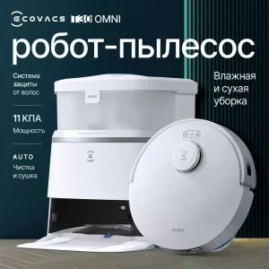 Робот-пылесос Ecovacs DEEBOT T30 PRO OMNI наилучший выбор для сохранения чистоты в доме не прикладывая при этом много усилий. Он многофункционален, но легок в использовании. Имеется мощная система всасывания до 11000 Па, что позволяет качественно избавляться от любых загрязнений. Встроенные датчики сканируют всю квартиру, запоминает ее карту и составляет более оптимальные маршруты уборки. Робот так же с легкостью проникает под мебель. Пылесос способен адаптироваться к любому покрытию, будь это ламинат, плитка или даже ковер. Есть станция самоочистки за счет которой заниматься очисткой мусорного контейнера ненужно. Так же станция чистит диски водой с температурой 70 градусов и сушит их.
