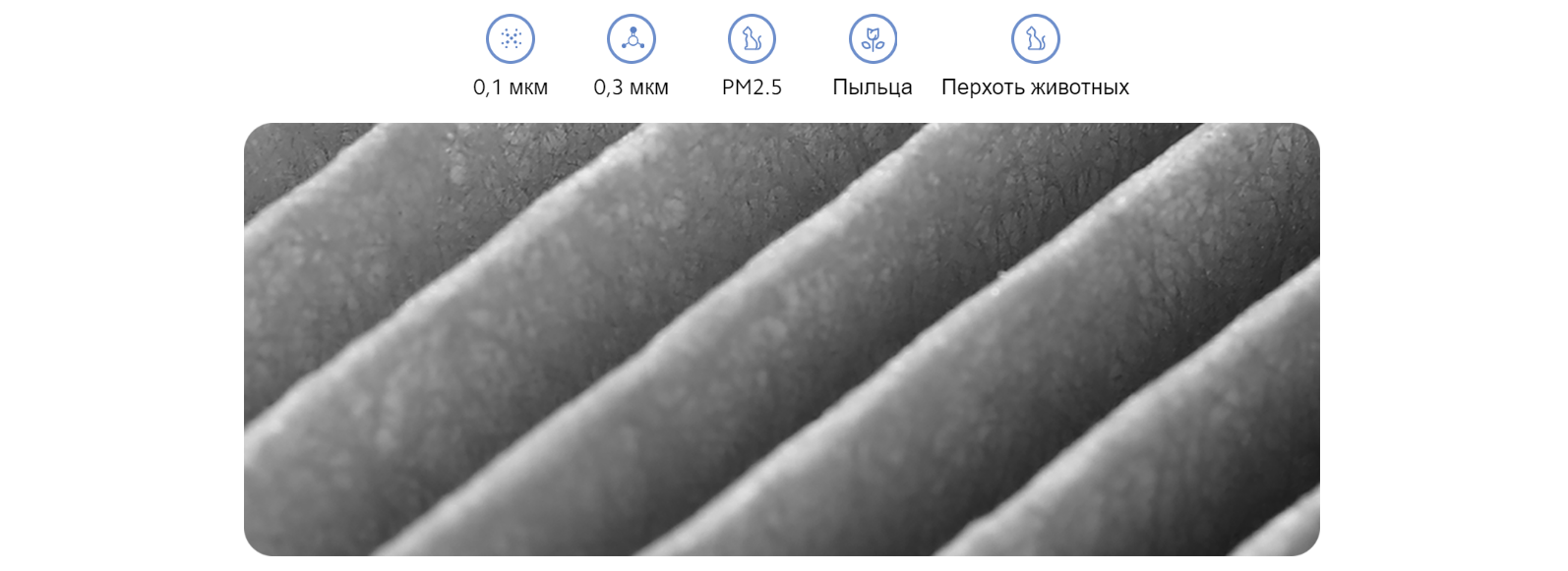 | Фильтрация | Шерсть, неприятные запахи, пыль, табачный дым, пух, формальдегид, пыльца, частицы PM2.5, частицы PM10 |