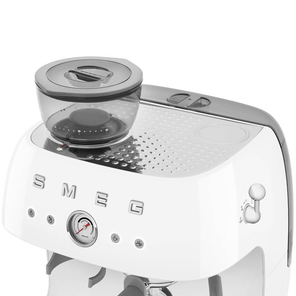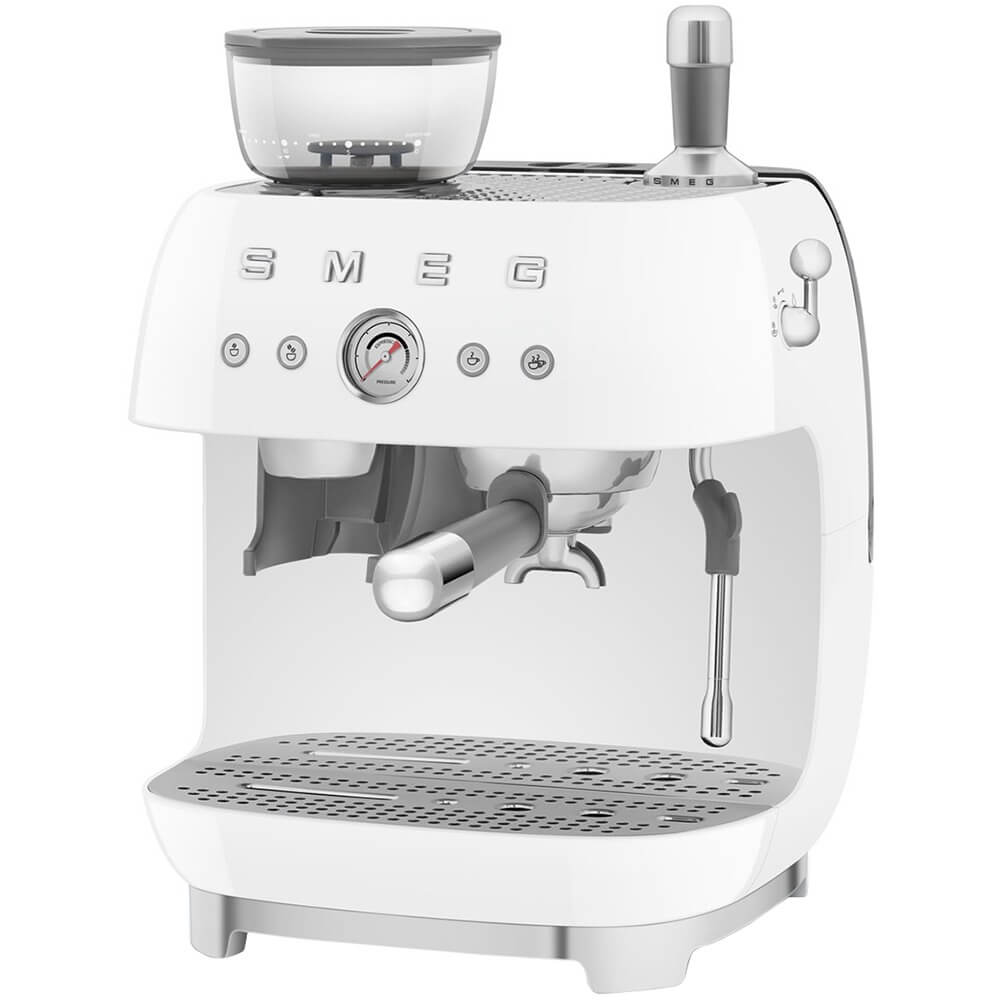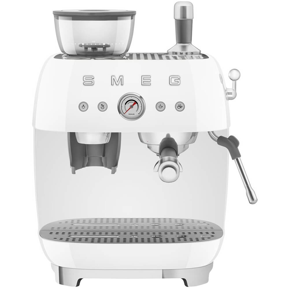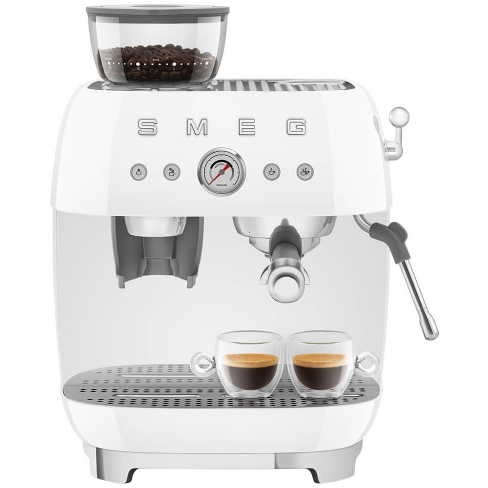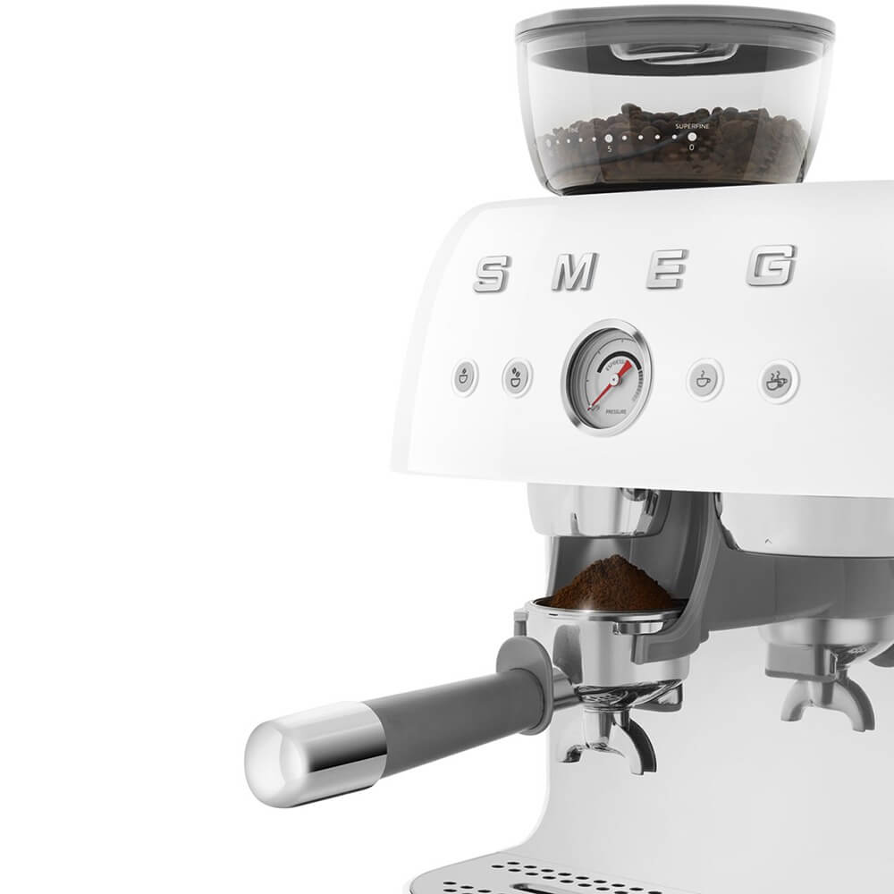 Эспрессо-кофемашина Smeg EGF03WHEU станет изысканным украшением любого интерьера благодаря стильному дизайну в нежных белых тонах. За секунды она варит ароматный эспрессо, а движущаяся на 360 градусов паровая трубка поможет создавать идеальный капучино. Устройство оснащено фильтр-держателем и тремя фильтрами для одной или двух порций кофе, а также для использования кофе в капсулах. Модель имеет термоблок из нержавеющей стали, который обеспечивает более быстрый нагрев и стабильную температуру. Для бережного использования воды во время приготовления кофе предусмотрен автоматический контроль уровня воды в баке.