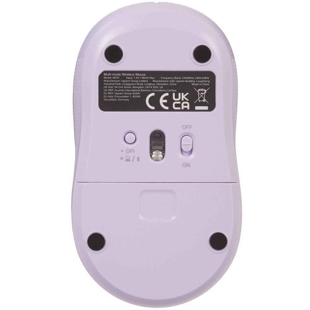 Мышка компьютерная беспроводная UGREEN M331 (65626) представляет собой современное устройство для управления компьютером. Она обладает мультирежимностью и способна работать как по Bluetooth, так и на частоте 2.4 ГГц. Эта модель отличается удобной формой, минималистичным дизайном и стильным сиреневым цветом. Благодаря использованию сверхчувствительного сенсора мышь обеспечивает быструю и точную реакцию на движения. Поддержка беспроводного подключения позволяет избавиться от лишних проводов на рабочем столе.