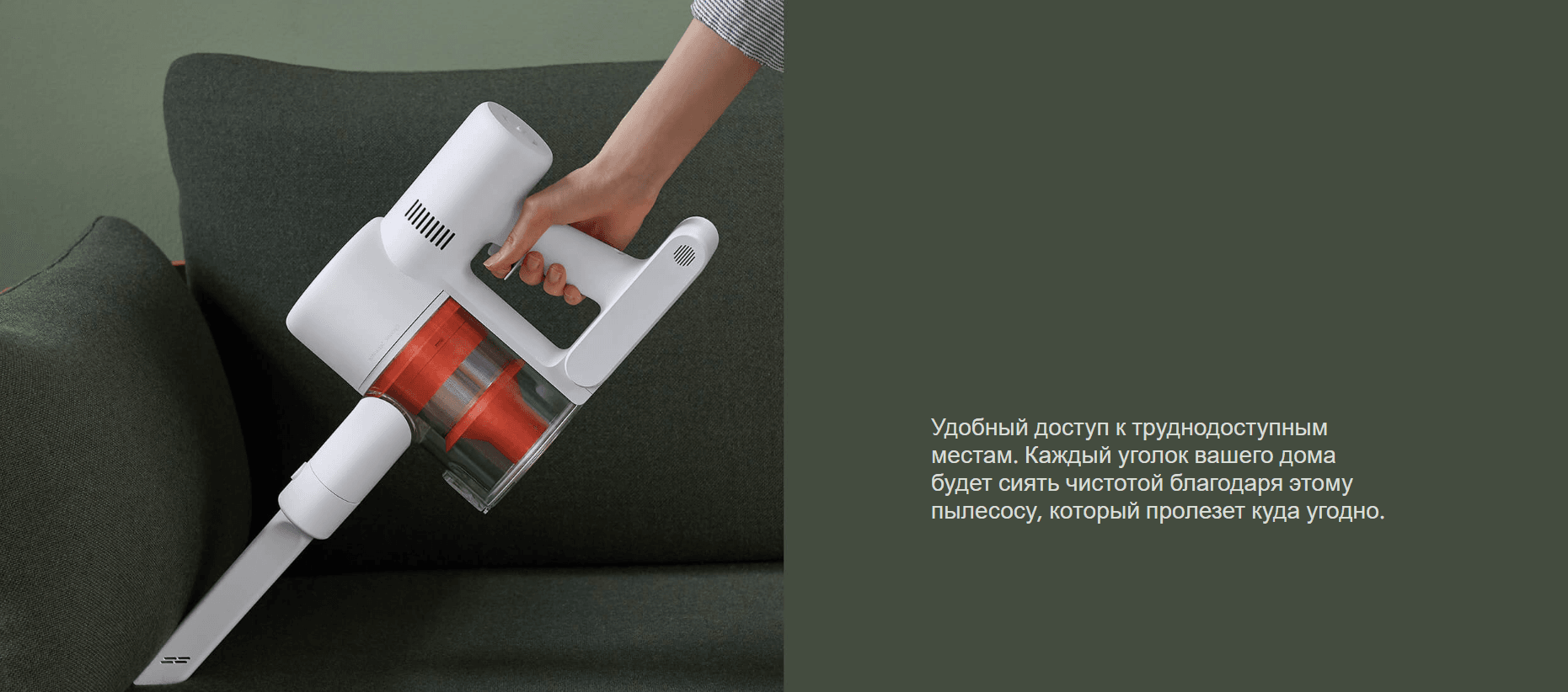 Крупная насадка для пола с высоким крутящим моментом может избавляться даже от застрявшей глубоко в ковре пыли. Щетка V-образной формы может проникать глубоко в неровные поверхности для извлечения мелкой пыли, защищая при этом материал поверхности. Уникальная конструкция с колесиками упрощает перемещение пылесоса по коврам и улучшает эффективность уборки.