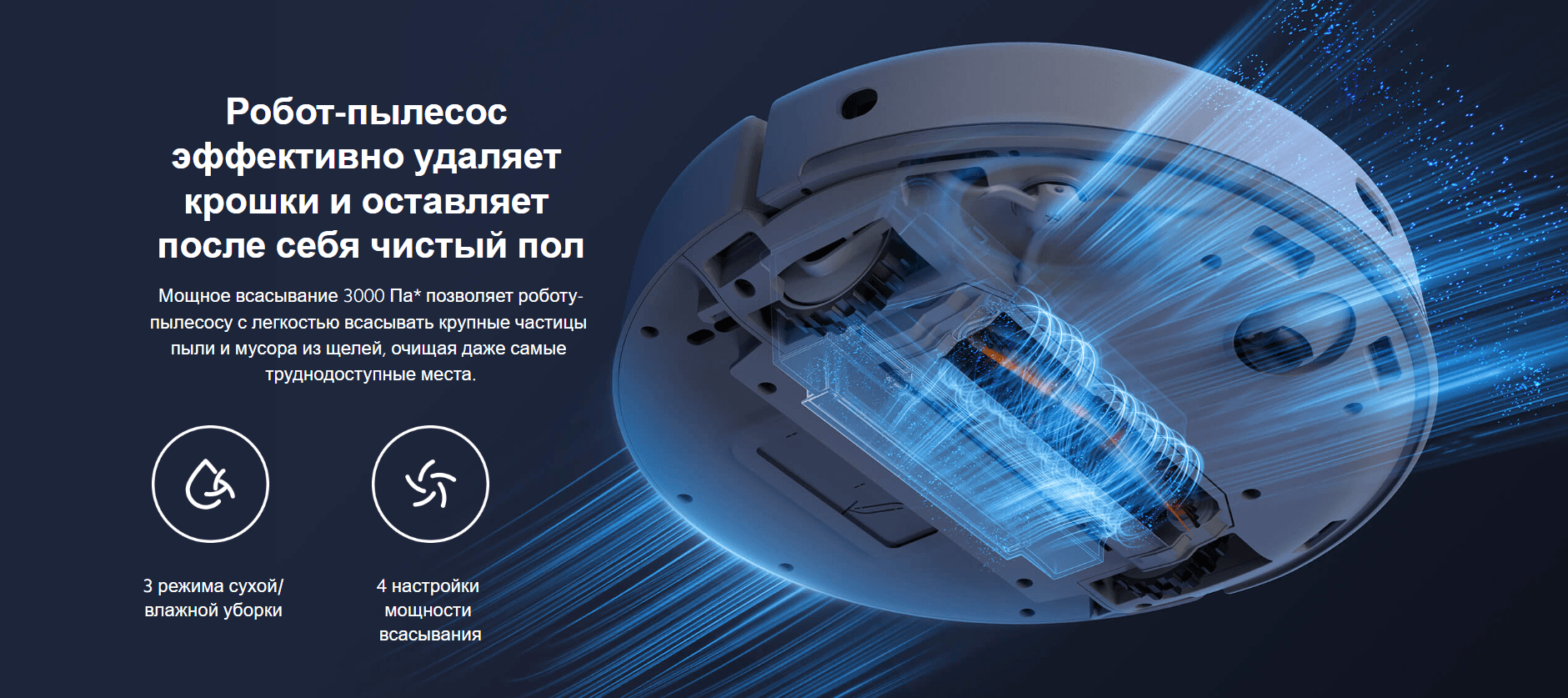 | Режимы уборки пылесоса-робота | плановая уборка, выбор зоны уборки, установка запретной зоны/виртуальной стены |