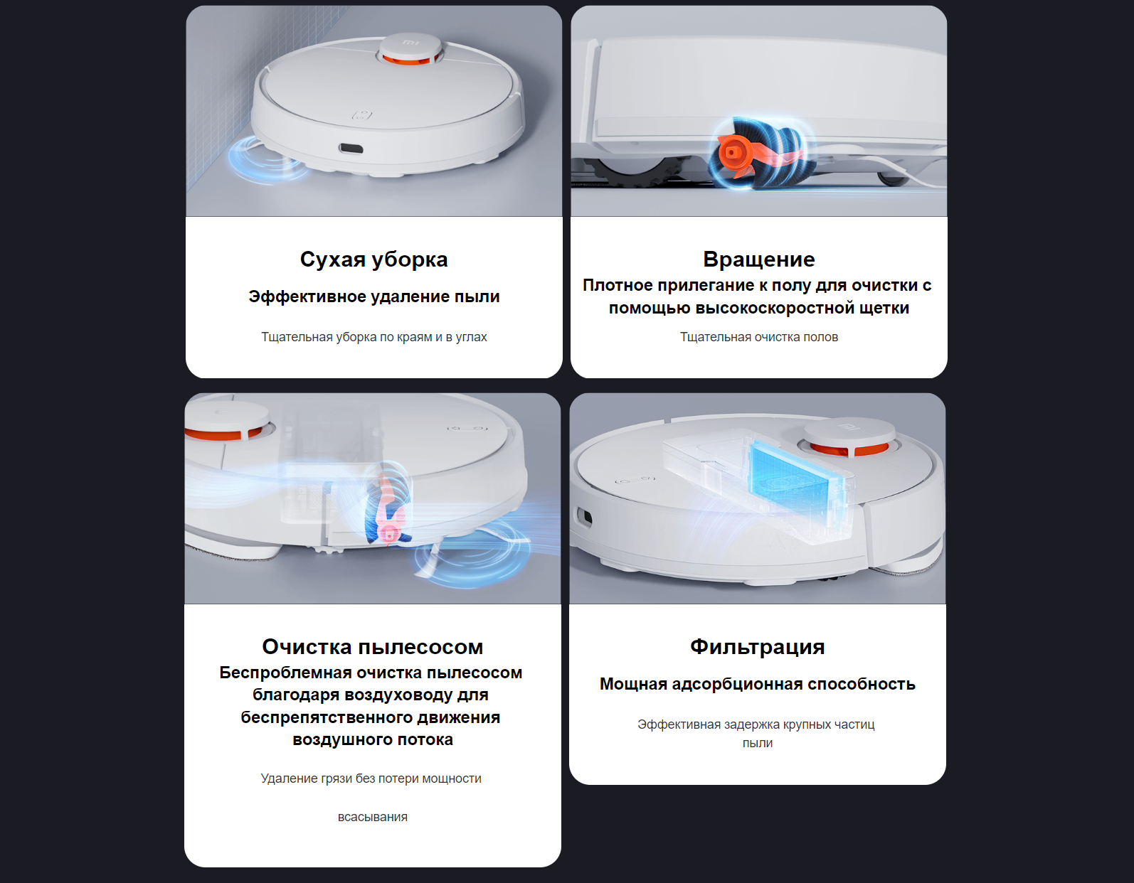 Высокопроизводительный бесщеточный мотор создает мощное всасывание, которое позволяет легко удалять грязь с пола. Всасывание в турборежиме достигает 2200 Па.