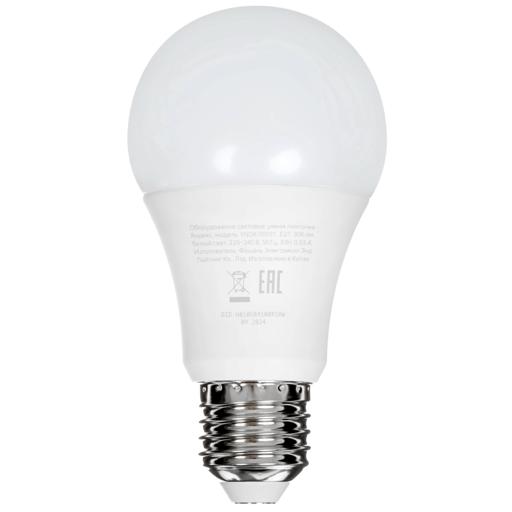 Умная лампочка Яндекс YNDX-00551, белая