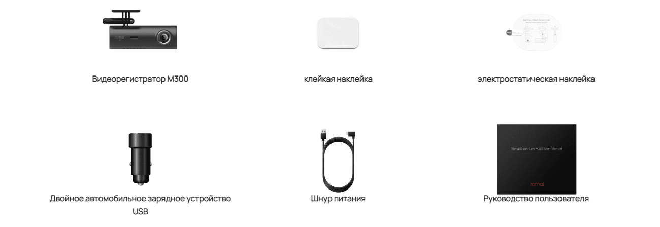 | Комплектация | Видеорегистратор, зарядное устройство, клейкая наклейка, электростатическая наклейка, шнур питания. руководство пользователя |