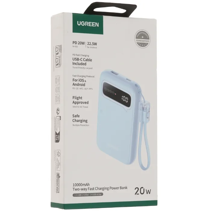 UGREEN CD384 — это ультракомпактный внешний аккумулятор нового поколения, который легко помещается на ладони, но обладает внушительной емкостью 10 000 мАч. Благодаря поддержке протоколов быстрой зарядки и мощности 20 Вт, он станет идеальным спутником для владельцев смартфонов, которым важна мобильность без компромиссов. Глубокий голубой цвет (Blue) придает устройству премиальный и современный вид.