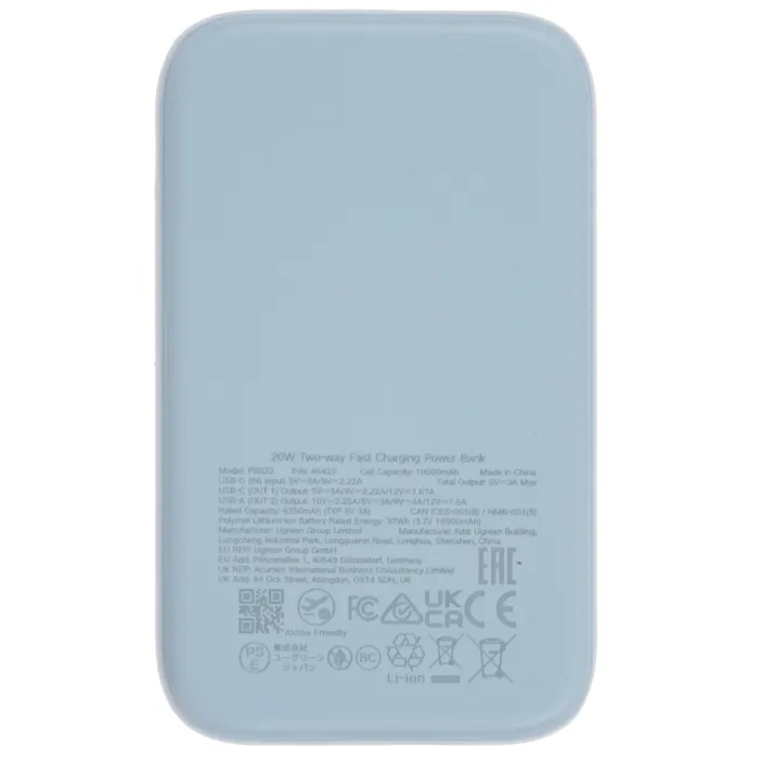 Внешний аккумулятор UGREEN CD384 (45423B) 10000mAh Mini Quick Charging 20W Power Bank – Blue