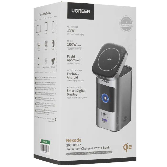 Внешний аккумулятор UGREEN PB771 (35527B) трехцветный (серый) с емкостью 20000mAh поддерживает быструю зарядку и включает в себя магнитное беспроводное зарядное устройство. Идеально подходит для быстрой подзарядки различных устройств. Стабильная мощность 145W идеальна для работы на ходу. С этим портативным аккумулятором с большой емкостью ваш телефон или планшет всегда будут подключены.