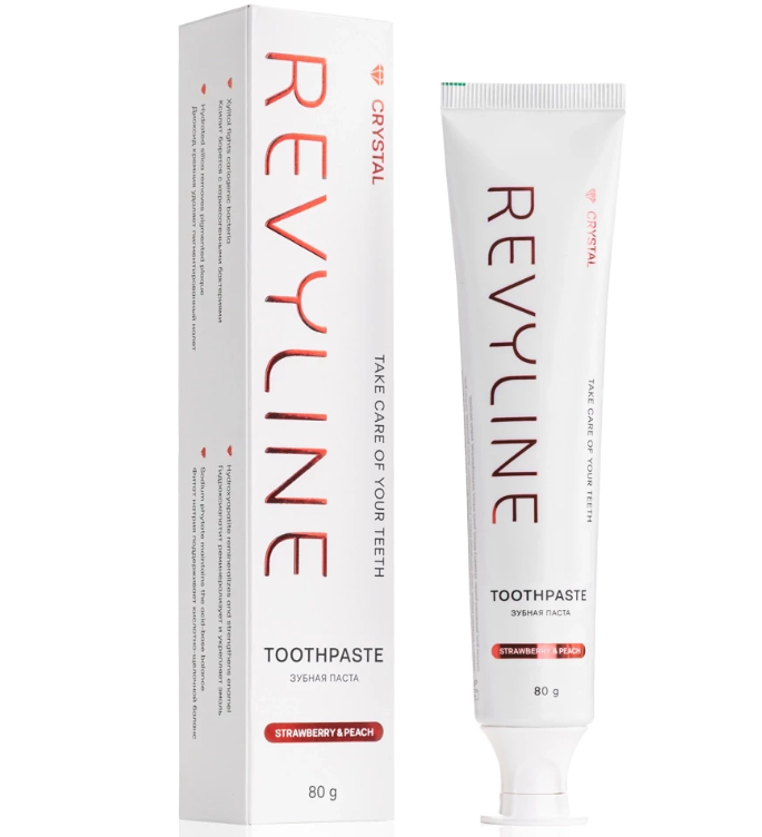 Зубная паста Revyline Crystal Клубника и персик без фтора, 80 г